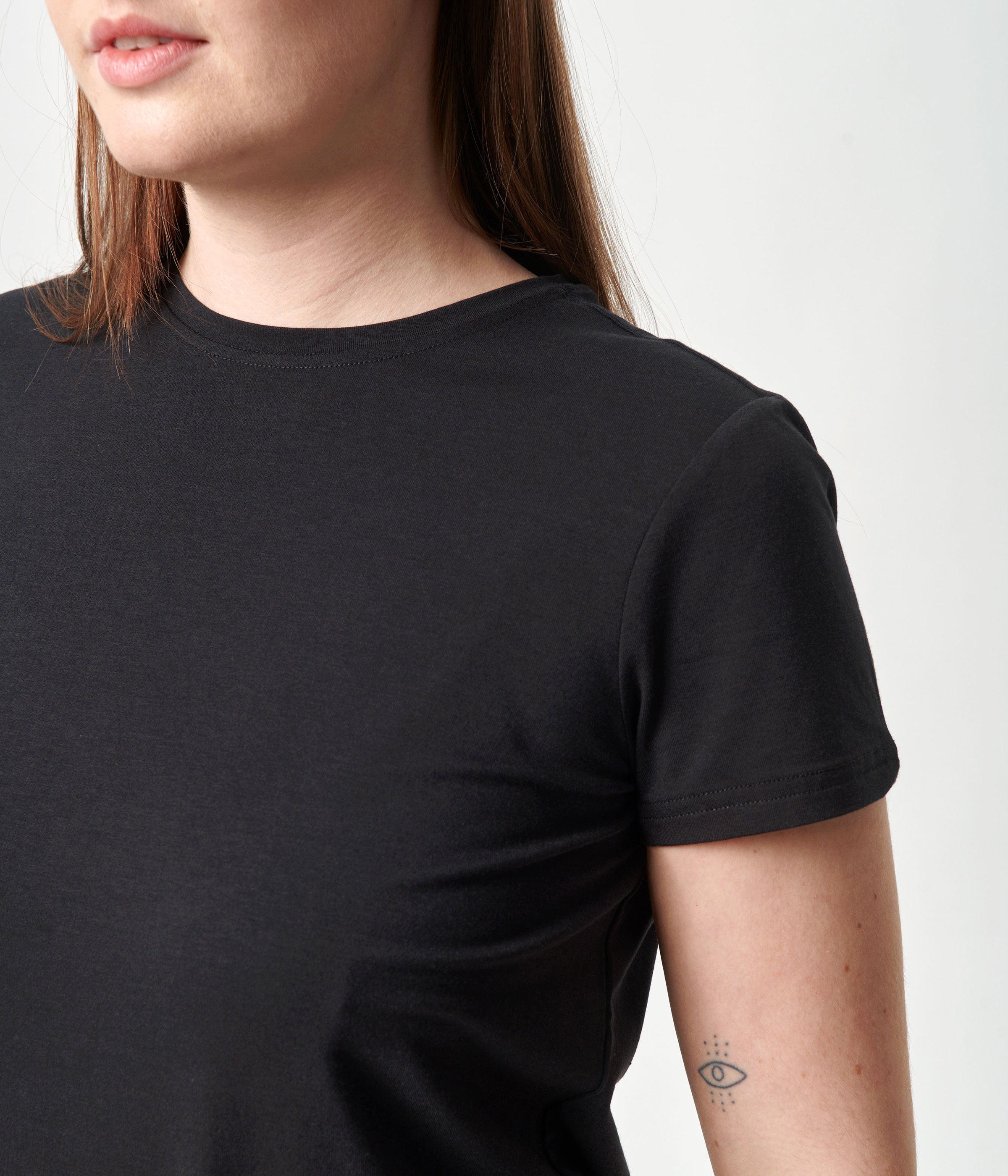 Disse 3 sorte bambus t-shirt til damer er fremstillet i den blødeste bambus. Bambusfibrene gør t-shirten både åndbar og temperaturregulerende, så den er behagelig at bruge både om sommeren og vinteren.