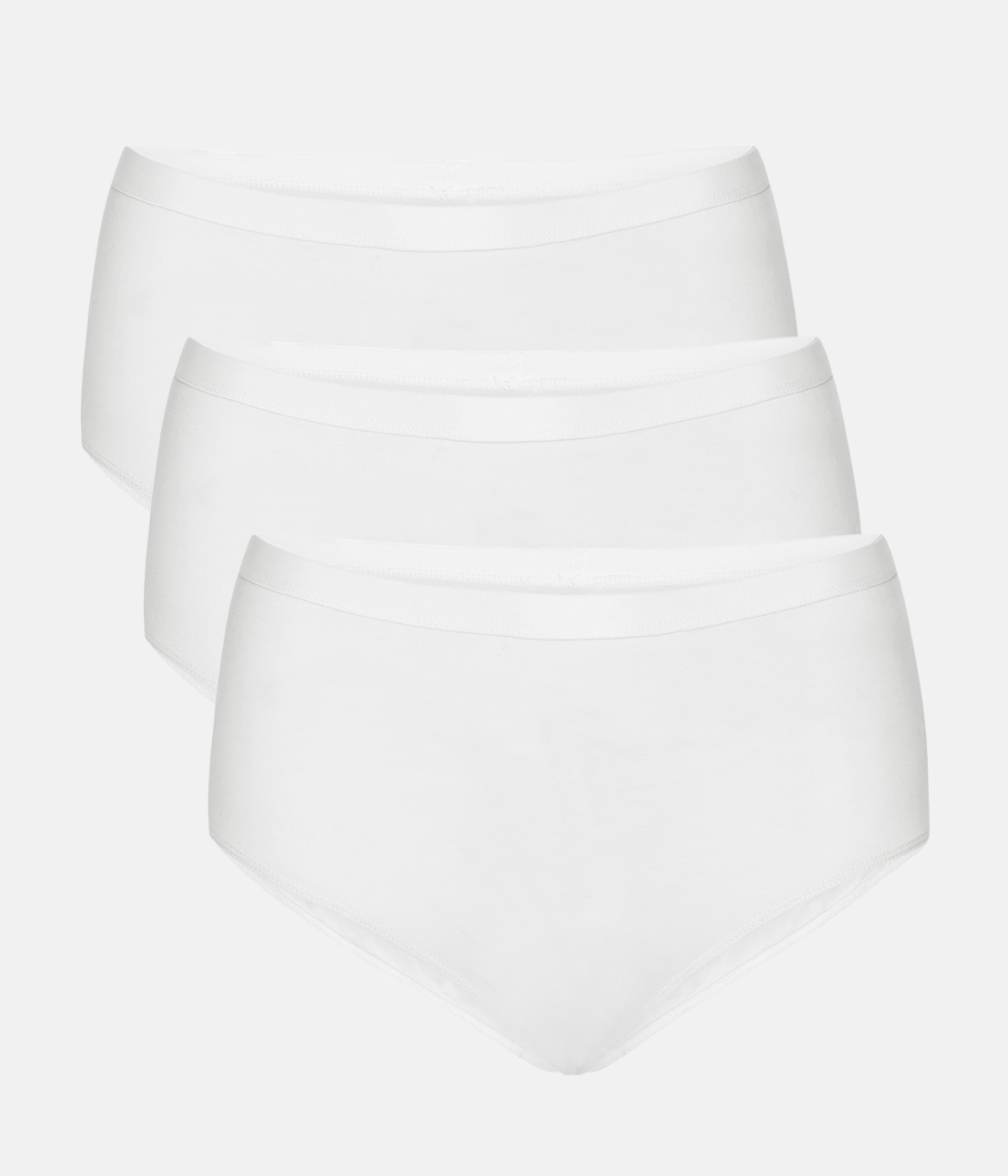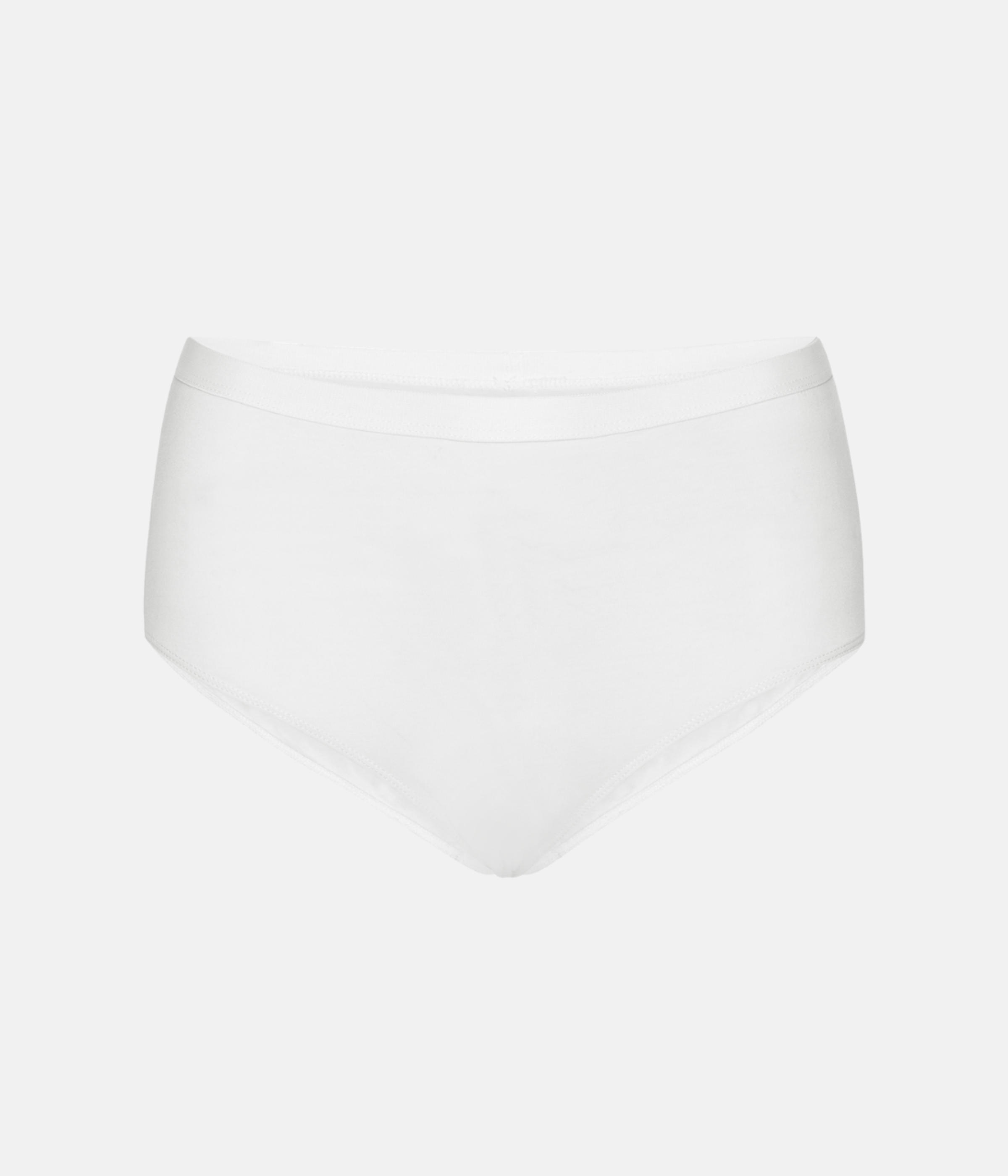 Disse hvide maxi trusser har en høj talje og god dækning af ballerne.