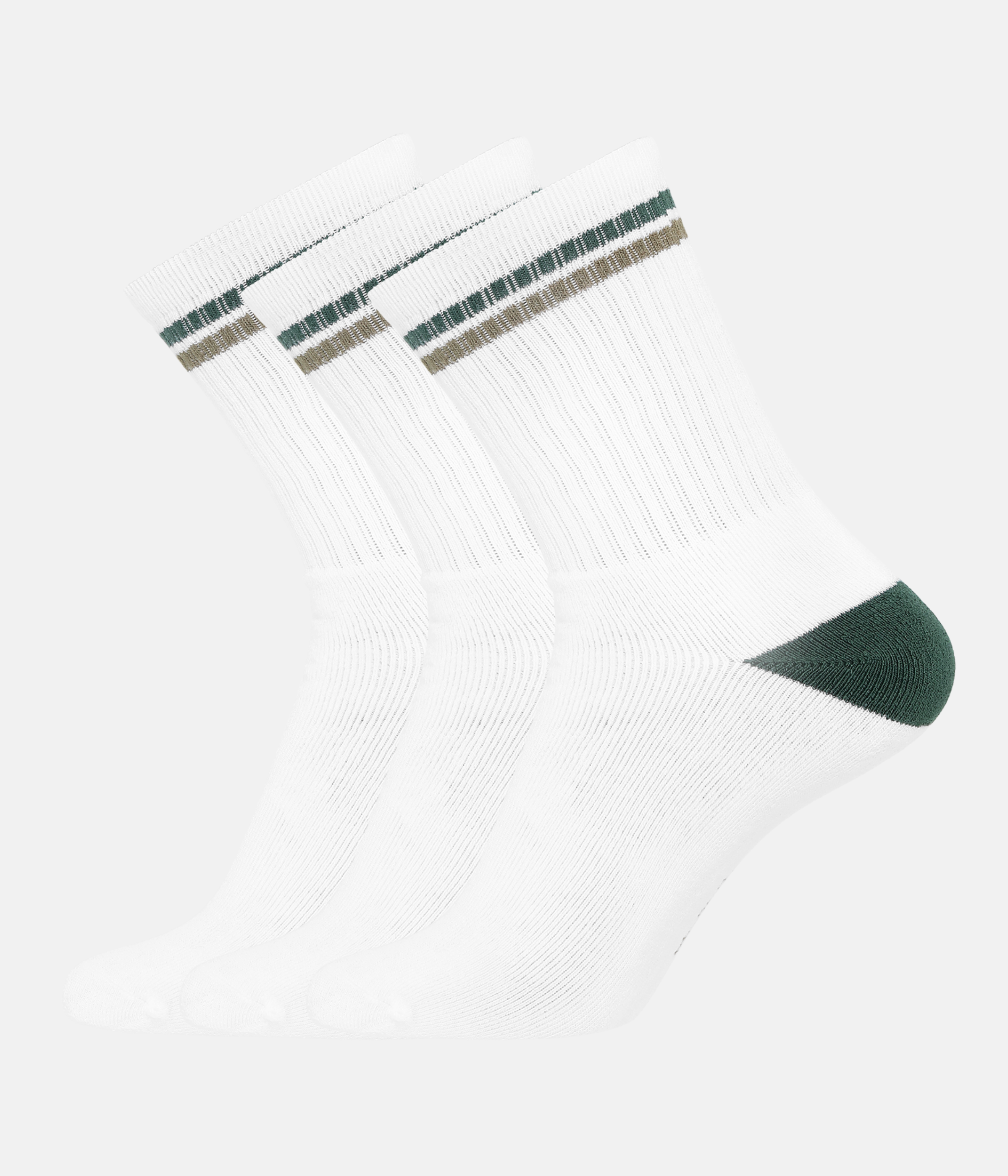 3 par hvide bambus tennissokker med army/olive striber