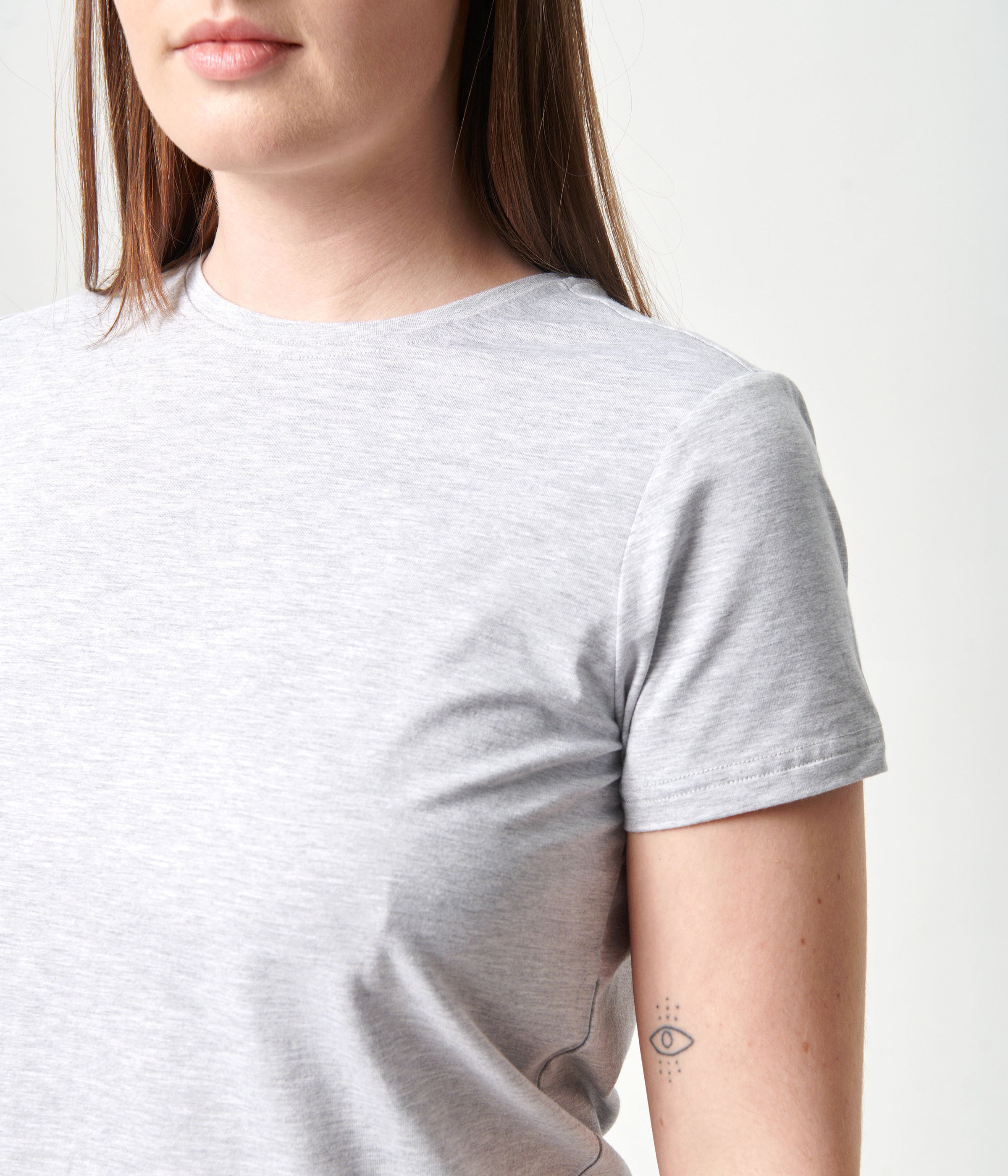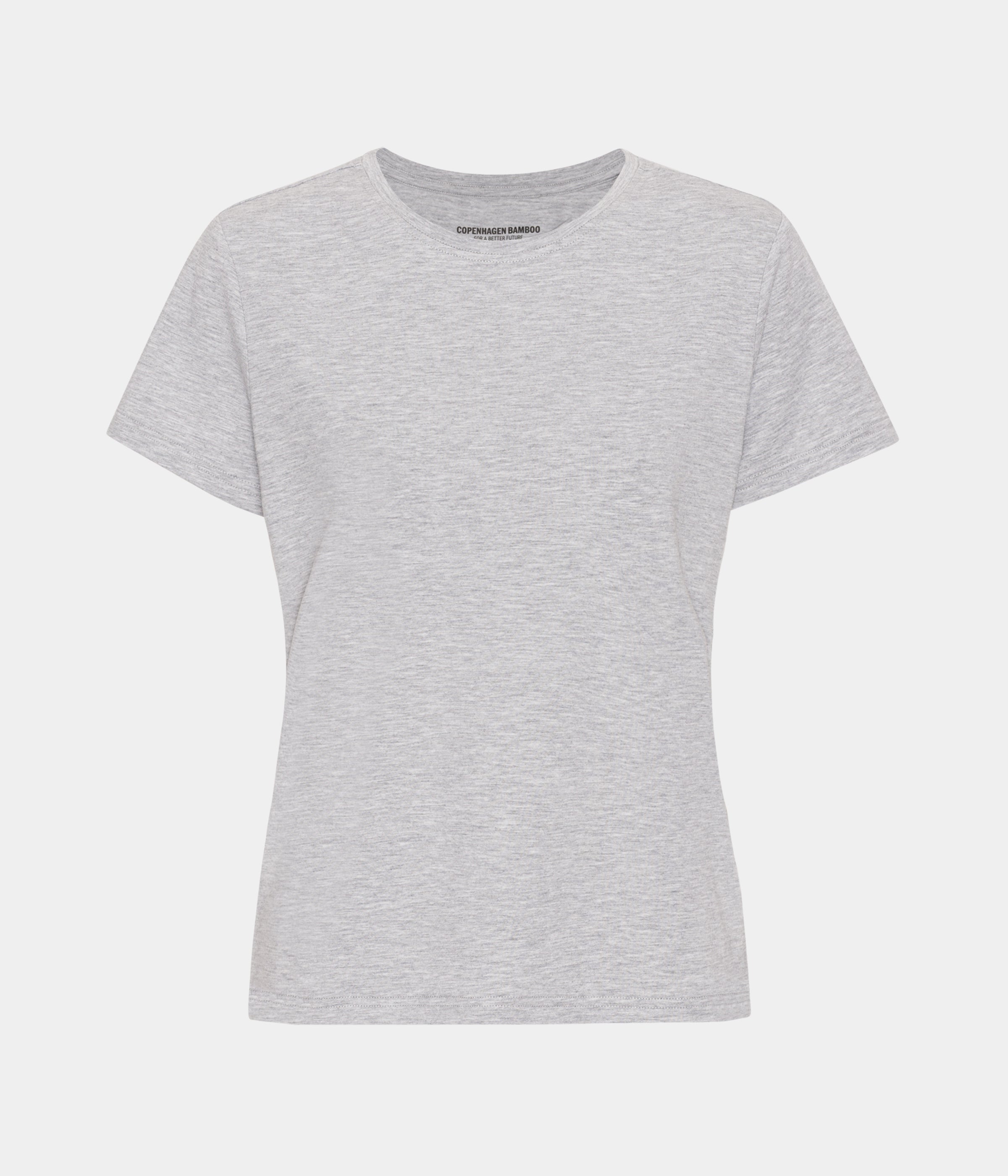 Denne lysegrå kortærmede T-shirt til damer er fremstillet i den blødeste bambusviskose. Bambusfibrene gør T-shirten både åndbar og temperaturregulerende, så den er behagelig at bruge både om sommeren og vinteren.